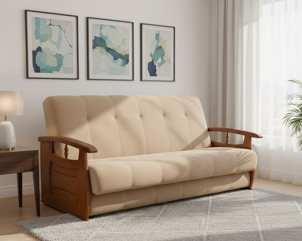 Диван "Альтаир" с деревянными подлокотниками